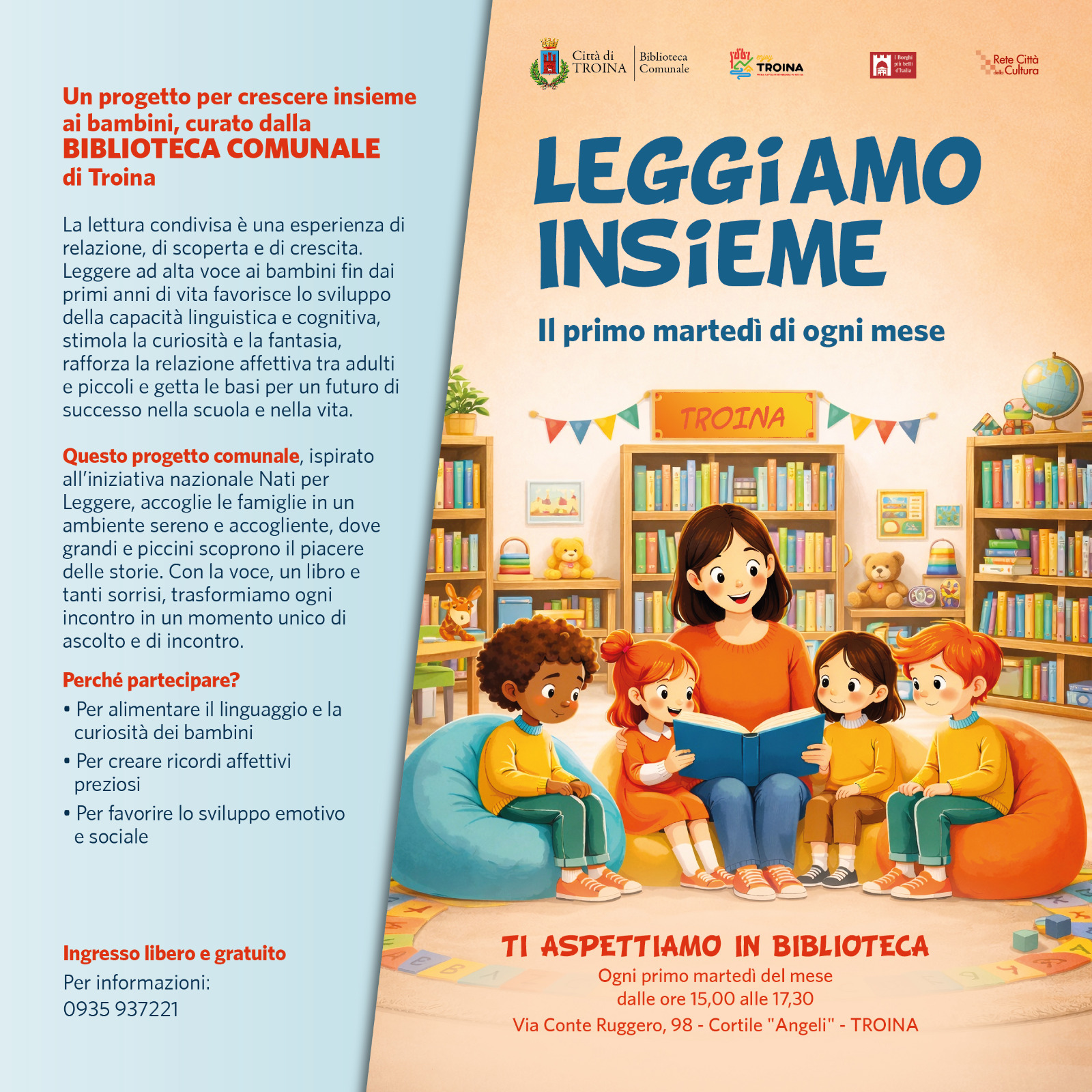 La lettura condivisa è un'esperienza di relazione, di scoperta e di crescita. Leggere ad alta voce ai bambini fin dai primi anni di vita favorisce lo sviluppo della capacità linguistica e cognitiva.